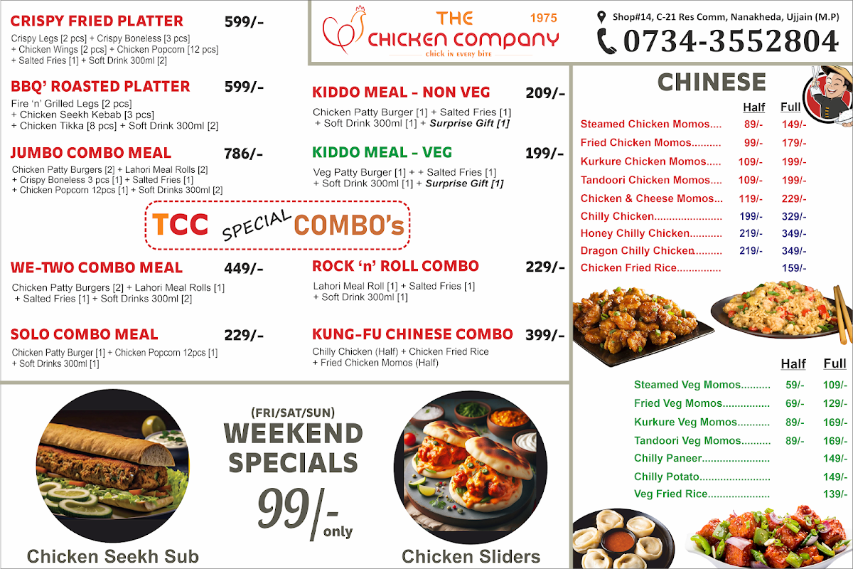 Welcome to The Chicken Company Ujjain, a delightful haven for chicken lovers located at Res-Comm, C21, Nanakheda, Ujjain. This eatery has quickly gained a reputation for its vibrant menu and comforting ambiance.
